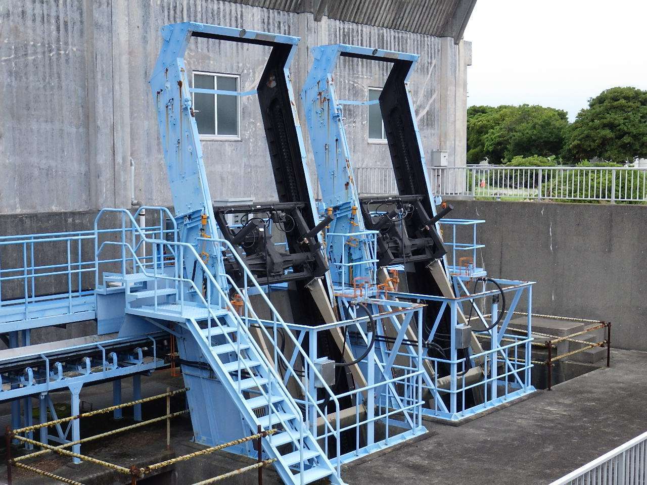 ・除塵機 =河川からゴミを取り除き、ポンプの故障を防ぐ