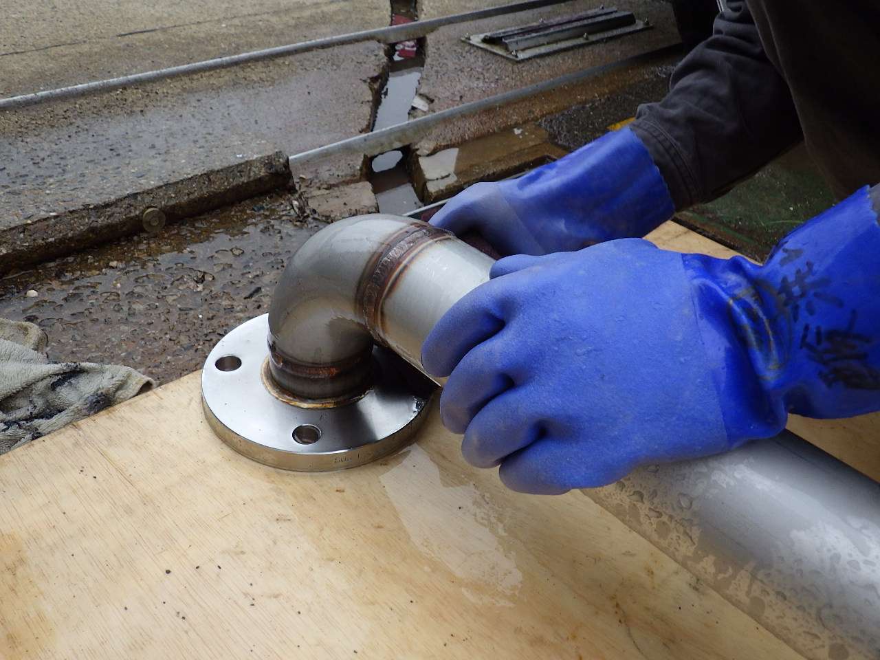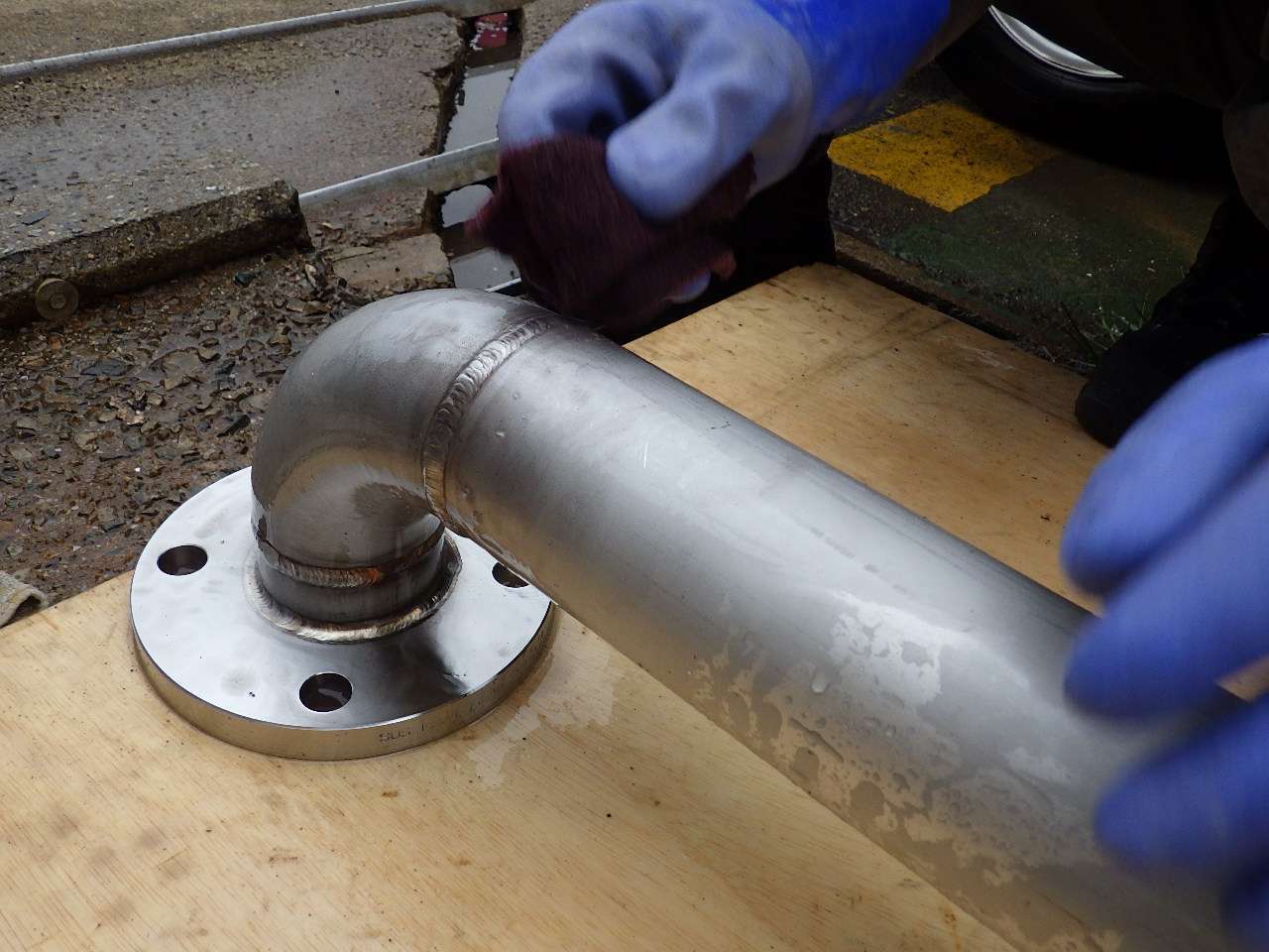 弊社では、よくステンレス製品(パイプ・形鋼など)の加工を行なっており、溶接後には必ず「酸洗」の処理をしています。